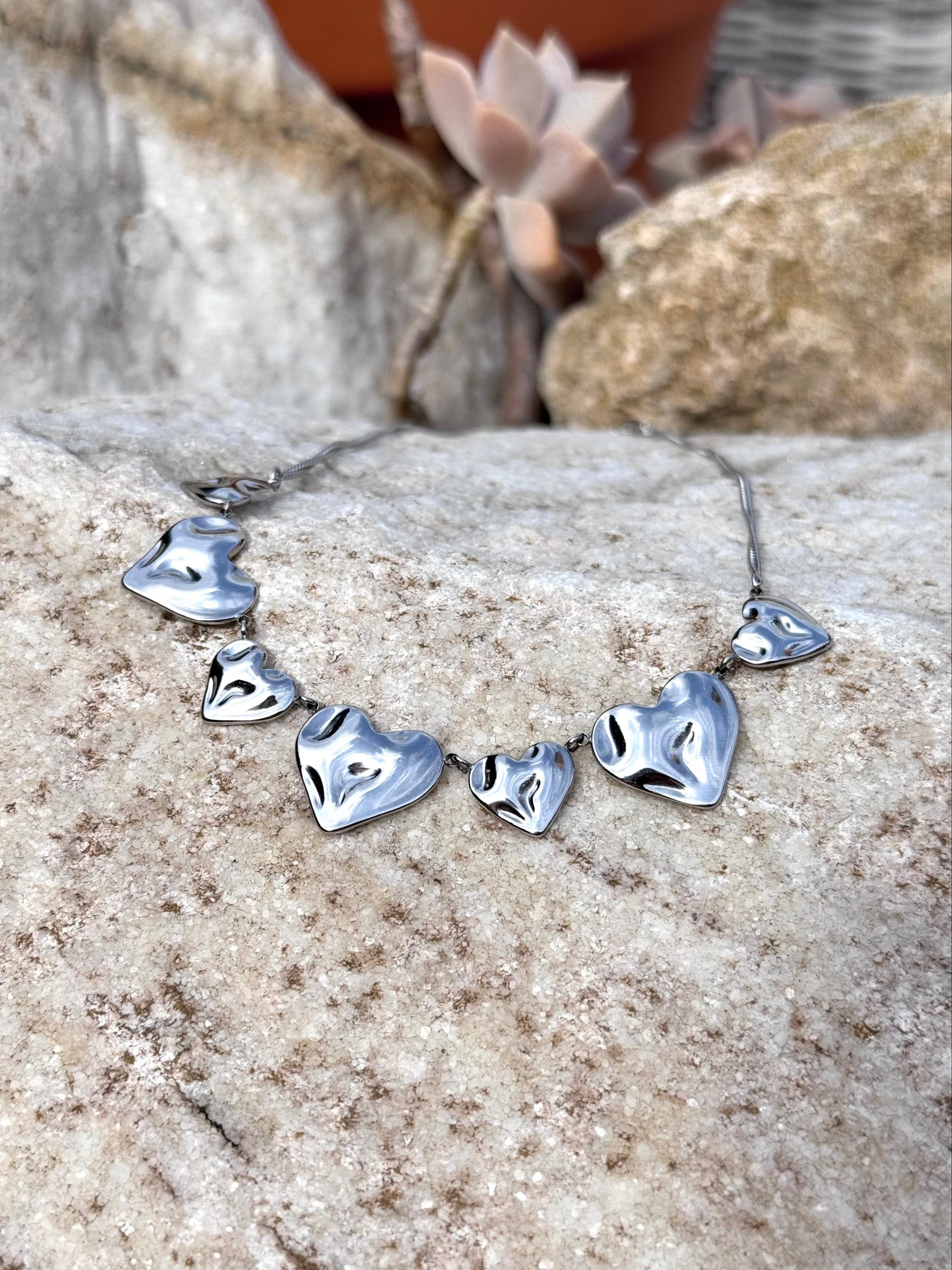 This stainless steel heart necklace, available in gold or silver, creates a striking and stylish combination with the matching heart earrings.